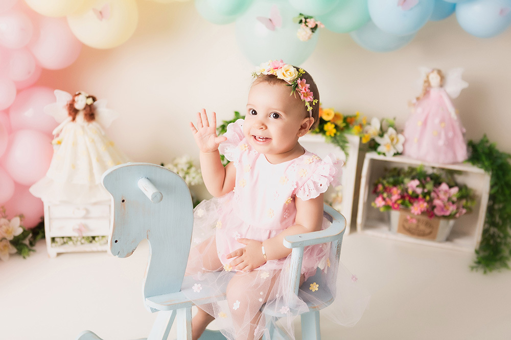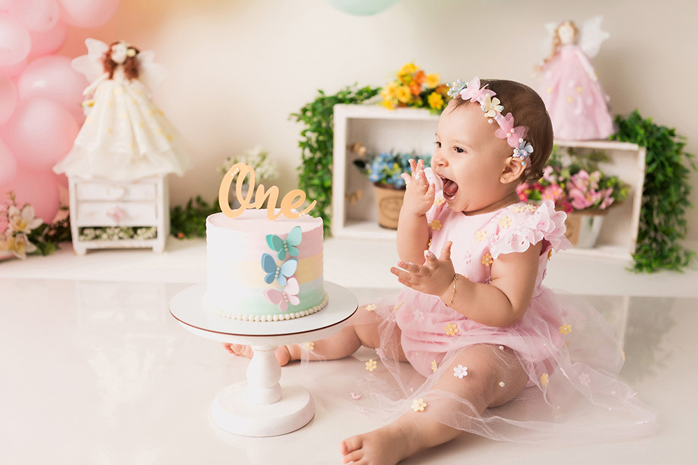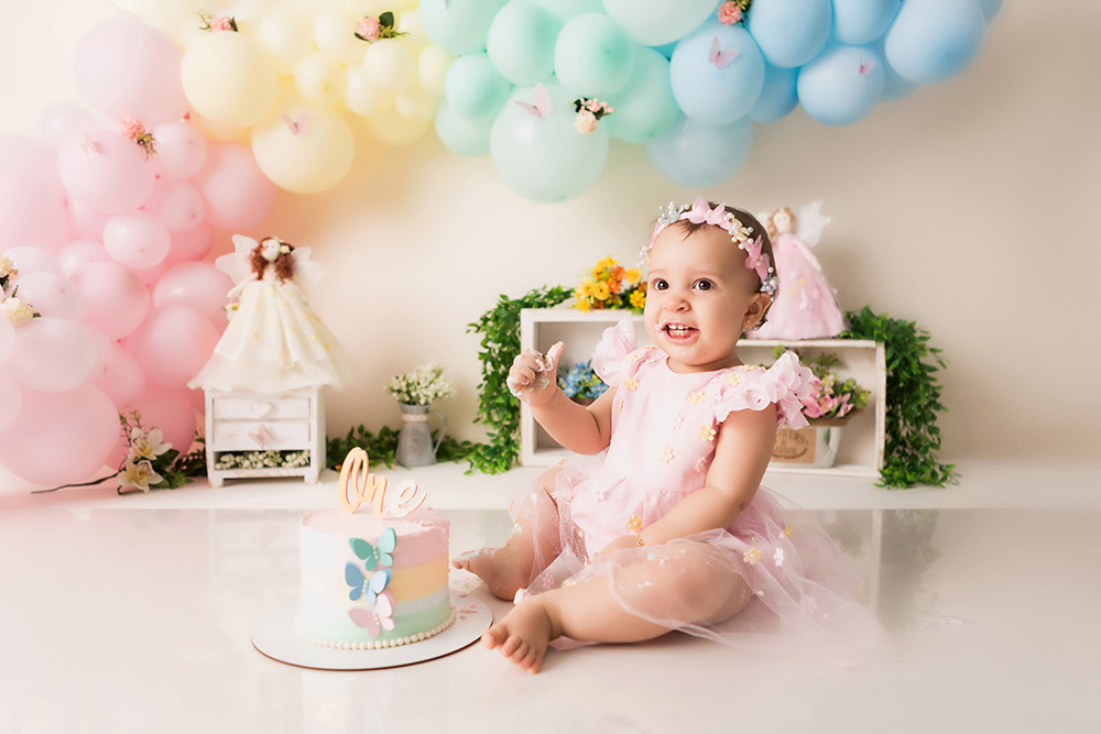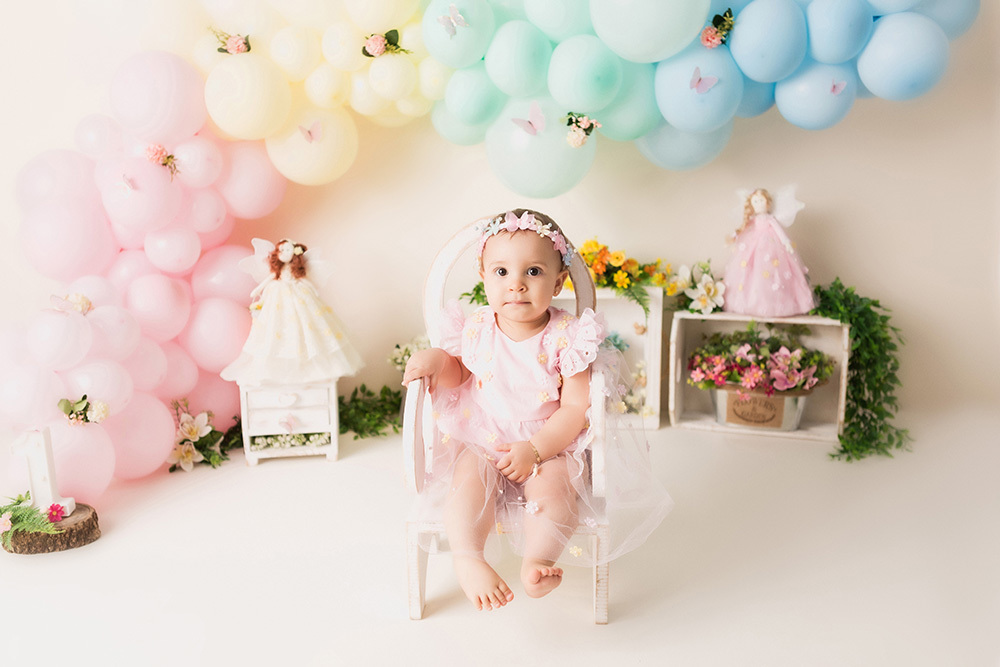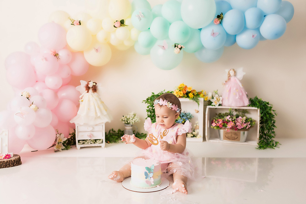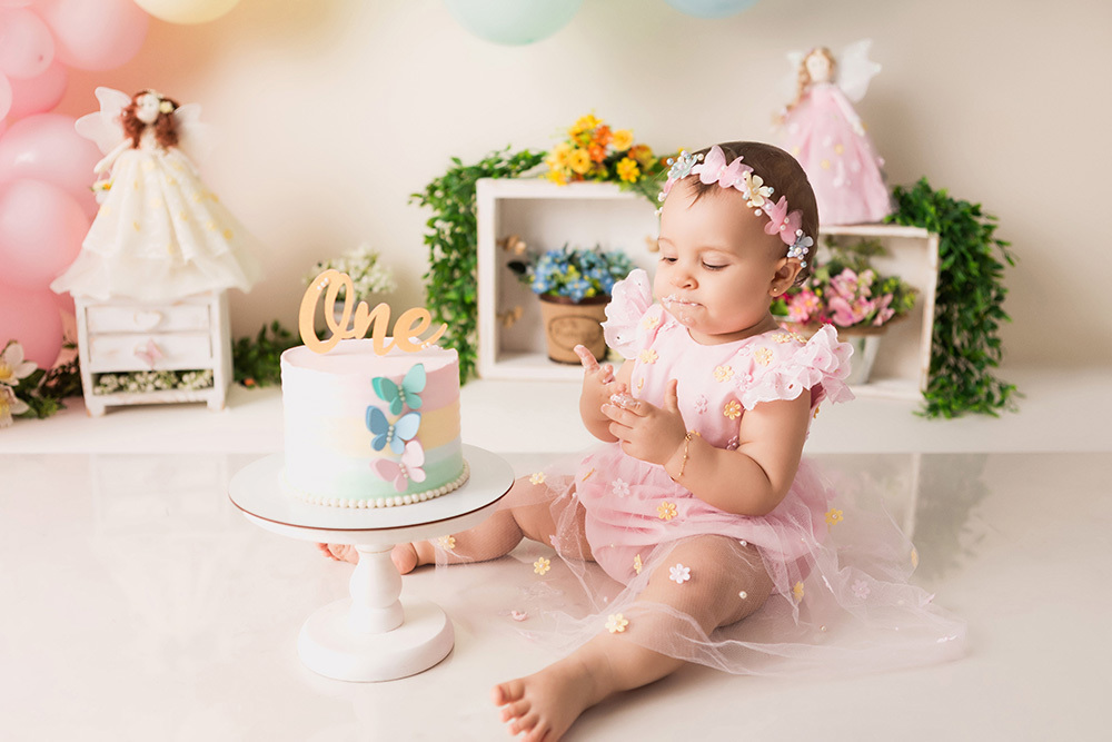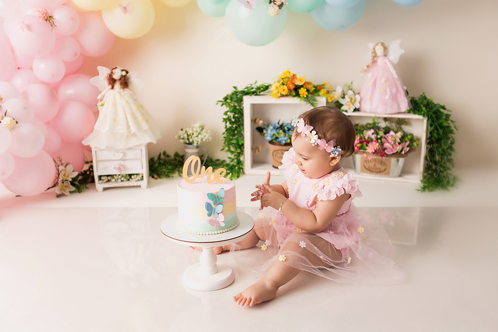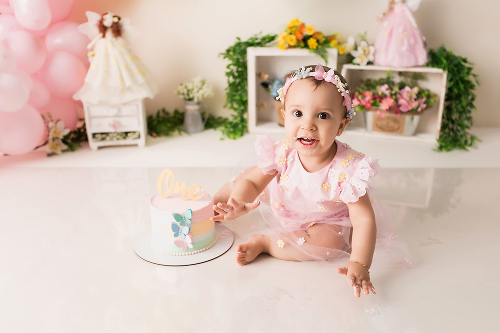 Smash Cake da Heloisa no tema Jardim de Fadas.